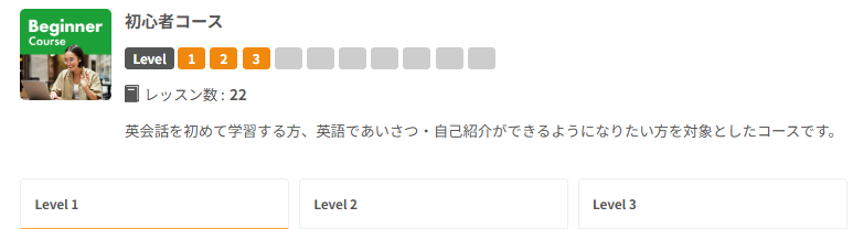 レベル3まであり、合計で22レッスンあります。