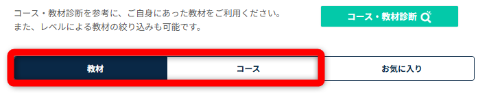 私の場合は、コースは使わず「教材」から選ぶことが多いです。