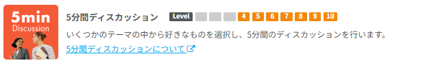 5分間ディスカッションは、「趣味」や「映画」など特定のトピックを基に講師と話せる教材です。